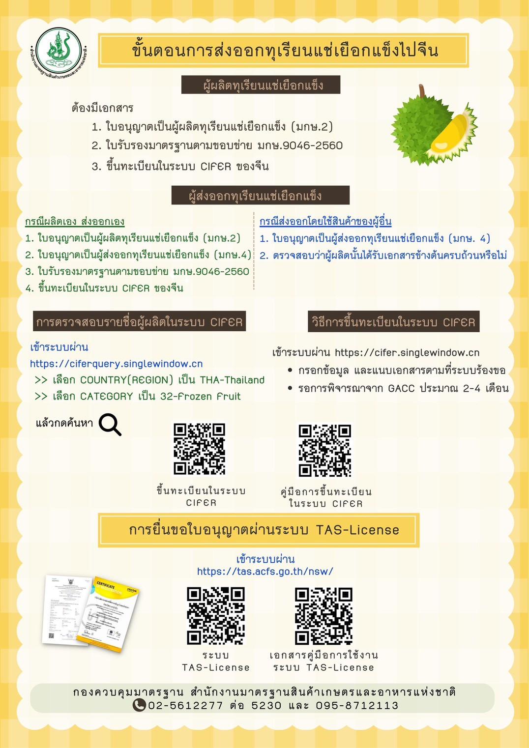 ขั้นตอนการดำเนินการเกี่ยวกับทุเรียนแช่เยือกแข็ง (มกษ. 9046-2560)